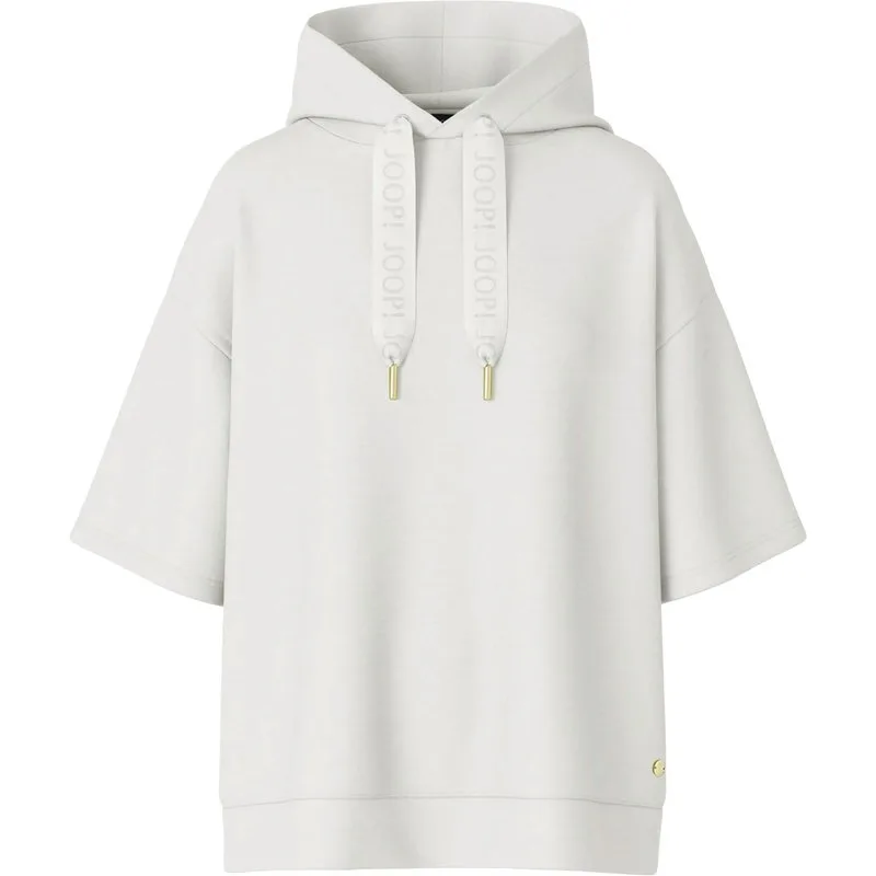 Casual hoodie met korte mouwen voor dames van het merk JOOP!. Zachte sweatkwaliteit van katoenmix, capuchon met trekkoord en logo grosgrain band.
