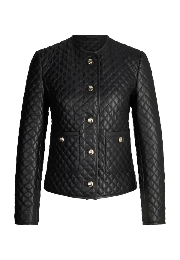 Design: Opgezette zakken; Type sluiting: Knoopsluiting; Type jas: Bikerjack; Voering: Gedeeltelijk gevoerd; Materiaal: Leer; Motief: Effen; Pasvorm: Normale pasvorm