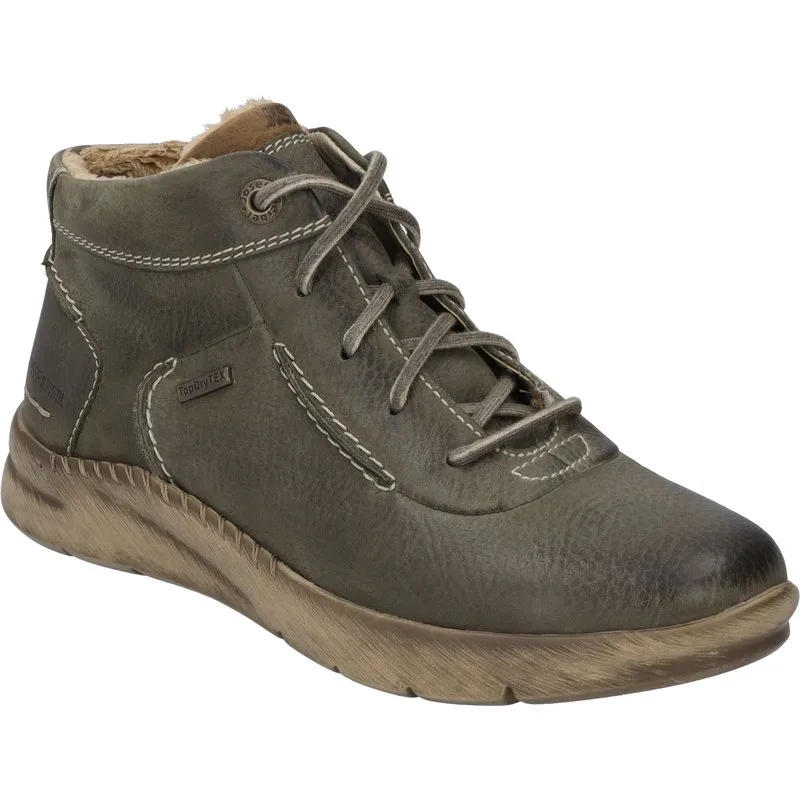 De lage schoen is vervaardigd uit fijn rundsleer en is daardoor bijzonder stevig. Voor aangenaam warme voeten is de lage schoen gevoerd met Combinatie leder-textiel. Het model Conny 50 gelaat een comfortabele instap dankzij een slimmevetersluiting. De typischeJOSEF SEIBEL TopDryTex technologie beschermt u tegen. Dit model heeft een uitneembare zool om zich te kunnen omkleden. De Strobel-productiemethode wordt gewoonlijk gebruikt voor sportschoenen, waardoor de schoen sportief is. Met de G-breedte schoen is de lage schoen Conny 50 bijzonder comfortabel. Waar u ook gaat, dit alledaagse model Conny 50 vergezelt u door dik en dun.