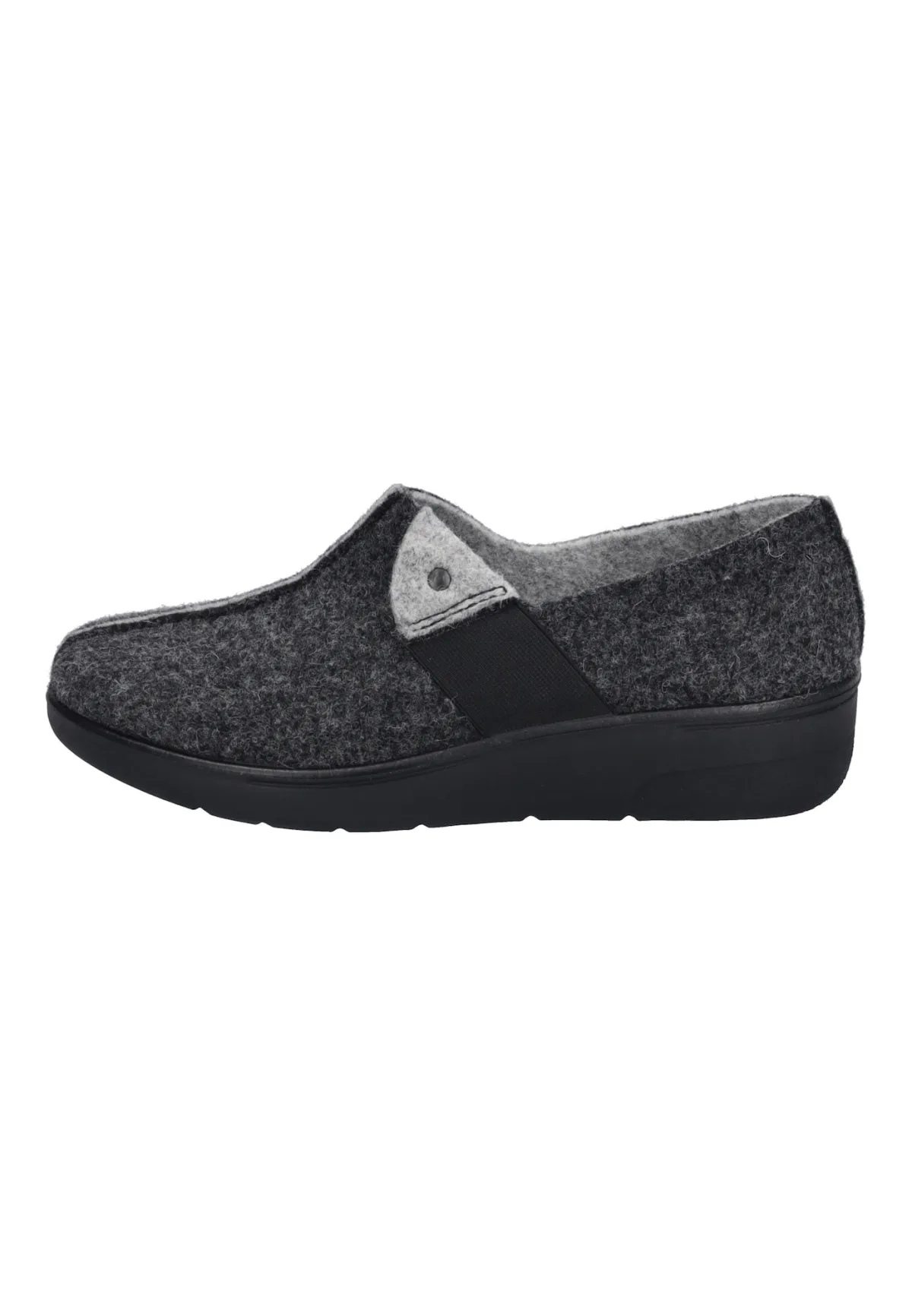 Design: Elastische inserts; Type sluiting: Slip; Type hak: Sleehak; Motief: Effen; Materiaal: Vilt; Schoenneus: Ronde neus; Hakhoogte: Middelhoge hak (3-7 cm)