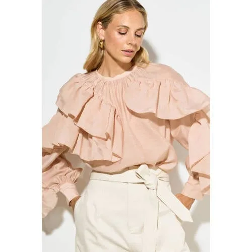 De oudroze dames blouse met ruches van JOSH V geeft je outfit een verzorgde en vrouwelijke uitstraling. De zachte kleur, de sierlijke ruches en de luchtige ballonmouwen zorgen voor een blouse die duidelijk anders is dan je dagelijkse basics. Geschikt voor een speciale gelegenheid in het voorjaar of een feestelijke dag waarop je er extra netjes uit wilt zien.Verfijnde details voor een feestelijke look Oudroze kleur die zacht oogt en goed combineert met neutrale tinten Ruches aan de voorkant voor een elegante, speelse uitstraling Ballonmouwen met lange mouwlengte zorgen voor een luchtig en modern silhouet Klassieke kraag en volledige knoopsluiting voor een nette, geklede look Effen ontwerp zonder zakken, waardoor de pasvorm rustig oogt Soepel vallende stof die prettig aanvoelt op de huidPerfect voor bruiloftsgasten en feestelijke momentenDeze blouse past goed bij gelegenheden zoals een bruiloft of een feestelijke borrel. Combineer met een nette pantalon of een rok en subtiele sieraden voor een verzorgde city chic look. Ook op kantoor komt deze blouse uit de Studio collectie goed tot zijn recht, in combinatie met hakken of loafers.JOSH V stijlvol in elke collectieJOSH V staat voor vrouwelijke ontwerpen met een moderne, city proof uitstraling. De Studio collectie richt zich op nette, elegante items die je eenvoudig combineert voor verschillende gelegenheden. Met deze blouse voeg je een stijlvol kledingstuk toe aan je garderobe dat je elk seizoen kunt dragen.Een passende keuze als je zoekt naar een blouse die tijdloos oogt en toch opvalt door de details.