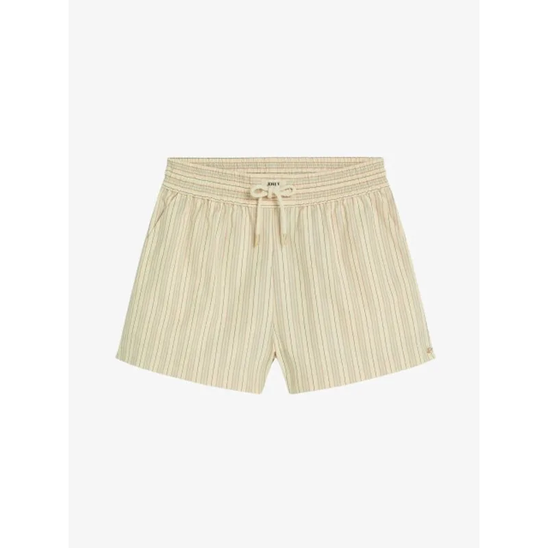 De JOSH V Tatum dames shorts in de kleur Light Ecru is gemaakt van katoen, ingekocht via Better Cotton, en gerecycled polyester. De beige shorts heeft een regular fit en een all-over streeppatroon. De shorts is verder afgewerkt met een subtiel JOSH V logo. De regular fit shorts combineer je perfect met de bijpassende JOSH V Lova blouse of met een T-shirtje en sandalen voor een heerlijke zomer look.