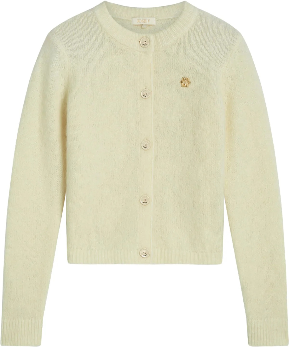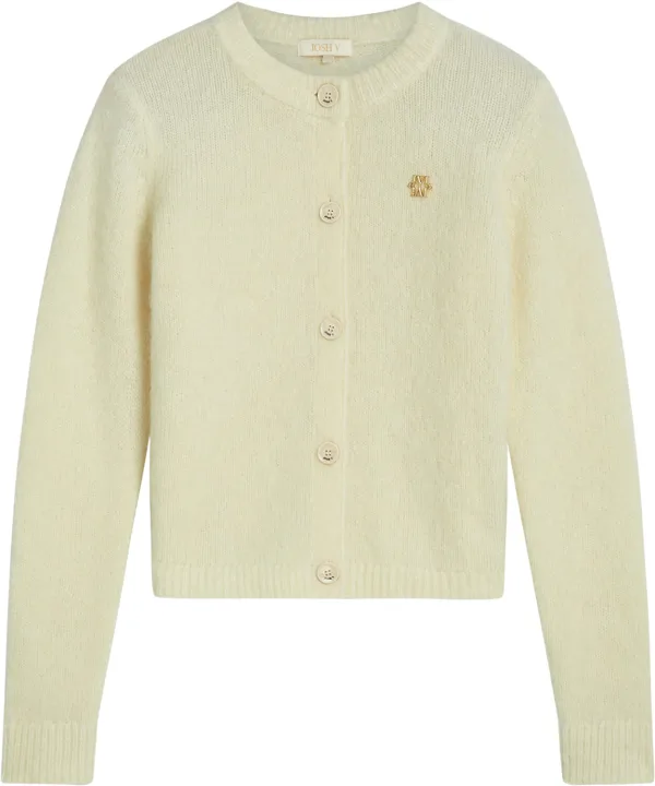 Vest Pauline van Josh V, vest met casual, minimalistische stijl. Effen ontwerp met ronde hals, knoopsluiting, lange mouwen en regular pasvorm. De zachte, gebreide structuur en het subtiele goudkleurige logo geven een rustige uitstraling. Combineer met een jeans of pantalon voor een nette, ontspannen set.