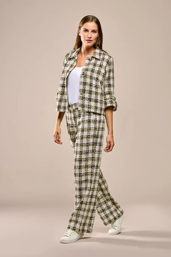 TREND ALERT...! De Josie pantalon is een must-have voor je garderobe. Gemaakt van elegante boucléstof, biedt deze broek een flatterende pasvorm en een verfijnde textuur. Het slanke silhouet met rechte pijpen zorgt voor een moderne en chique uitstraling. De bouclé stof, die katoen met een speels kleurenpalet van zwart, geel, bruin en wit combineert, geeft de broek een verfijnde en toch levendige look. Deze veelzijdige broek is de perfecte mix van comfort, kwaliteit en stijl, en biedt eindeloze mogelijkheden om jouw persoonlijke stijl te accentueren. Get the look...!