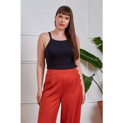 “Comfort never looked this good.” Deze veelzijdige knitted cutie heeft een verfijnd zigzagpatroon en is uitgevoerd in een soepele, fijngebreide en stretchy viscosemix in marineblauw, die garant staat voor ultiem draagcomfort. * Mouwloos * Stretchy ribboord * Lang genoeg om op een normale heupbroek te dragen