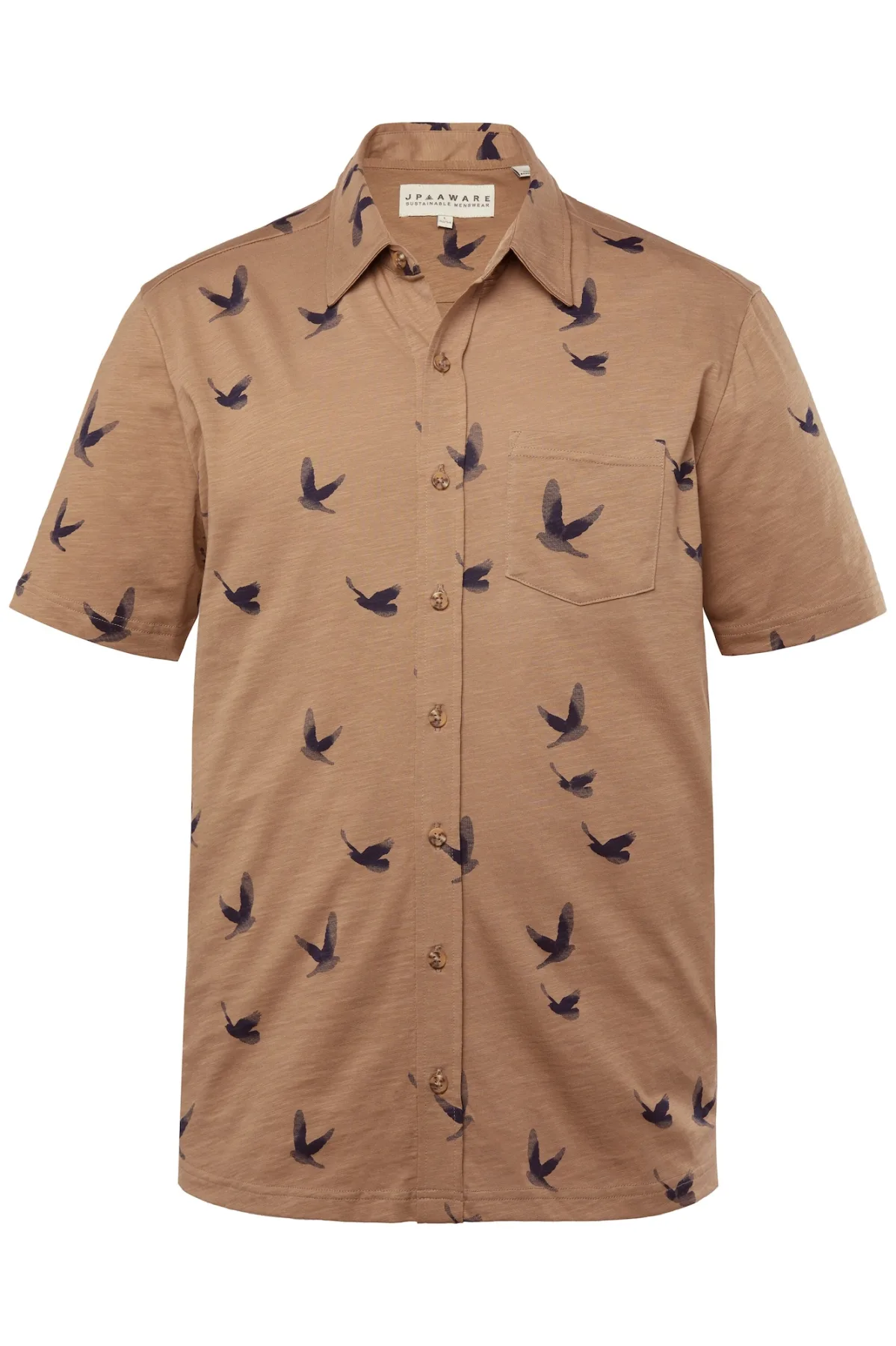 JP1880 Overhemd lichtbruin / zwart gemêleerd
