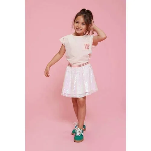 Dit lichtroze meisjes T-shirt van Jubel is een basic met speelse details voor elke dag. De zachte kleur past gemakkelijk bij verschillende outfits en de rechte mouwen en ronde hals geven een rustige, comfortabele uitstraling. Aan de voorkant zit een borstzakje, terwijl de backprint op de achterkant zorgt voor een extra detail zodra je kind zich omdraait.Zachte kwaliteit voor elke dag Gemaakt van 96% katoen en 4% elastaan voor een zachte stof met lichte stretch Korte mouwen en ronde hals, prettig om te dragen in elk seizoen Borstzak aan de voorkant voor een speels accent Backprint op de achterkant voor een grafisch detail Geen sluiting, het shirt trek je eenvoudig over het hoofd Wasbaar op 40 graden en lauw strijkbaar (1 punt) Geschikt voor peuters en kleuters binnen de kindermode collectie Niet drogen in de droogtrommel om de stof en kleur mooi te houdenPraktisch en kindvriendelijkDit T-shirt is gemaakt voor actieve dagen, of dat nu spelen, naar school gaan of een logeerpartijtje is. De toevoeging van elastaan zorgt voor extra bewegingsvrijheid, zodat het shirt soepel meebeweegt met elke sprong en draai.Speelse stijl van JubelJubel ontwerpt vrolijke, modieuze kinderkleding die goed aansluit bij het leven van energieke meisjes. De ontwerpen combineren draagcomfort met opvallende details, waardoor elk item makkelijk te stylen is en toch eigen blijft.Een licht en speels shirt dat eenvoudig te combineren is met andere kleding.