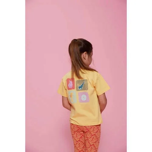 Dit zonnige Jubel T-shirt uit de 'Lazy Lagoon' lijn geeft de outfit van je meisje direct een frisse, vrolijke uitstraling. Het zachte materiaal van 100% katoen voelt prettig aan op de huid en is ideaal voor schooldagen, speelafspraakjes en vakanties. Dit katoenen meisjes T-shirt in helder geel heeft een ronde hals en korte mouwen, waardoor het gemakkelijk over het hoofd gaat en fijn draagt in het dagelijks leven.Praktische details voor elke dag Gemaakt van 100% katoen, een soepele stof die comfortabel aanvoelt Korte, rechte mouwen en een ronde hals voor een ontspannen pasvorm Speelse borstzak aan de voorkant en opvallende backprint Geen sluiting, zodat het T-shirt eenvoudig aangetrokken kan worden Wasbaar op 40 graden en lauw strijkbaar (1 punt) Niet drogen in de droogtrommel, zo blijft de stof langer mooiFijn om te dragen, makkelijk te combinerenDe gele kleur laat zich makkelijk combineren met een denim short, een legging of een luchtige rok. Dankzij de backprint en de borstzak krijgt de simpele vorm net wat extra karakter. Geschikt voor peuters, kleuters en schoolkinderen, zodat je voor verschillende leeftijden dezelfde herkenbare stijl kunt kiezen.Jubel kinderkledingJubel ontwerpt vrolijke kinderkleding waarin kleur en print een belangrijke rol spelen. De collecties zijn afgestemd op het actieve leven van kinderen, met comfortabele modellen die genoeg bewegingsvrijheid geven. Zo kies je met Jubel voor kleding die er speels uitziet en prettig draagt tijdens elke dag vol avontuur.Een fris T-shirt dat snel de favoriet in de kast van je meisje kan worden.