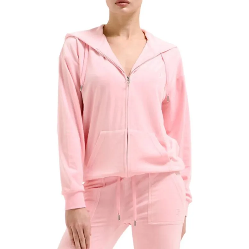 Oversized hoodie met ritssluiting in sappig roze klassiek velours. Deze boyfriend-fit hoodie heeft het klassieke 'JC'-logo op de borst aan de voorkant, een klassieke 'J'-ritssluiting met zilverkleurige merkhardware, een kangoeroezak aan de voorkant en geribde boorden en zoom.