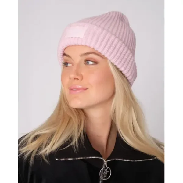 Malin beanie Omgeslagen muts, wollen grof gebreid. Deze muts heeft een ‘Juicy Couture’ geweven label aan de voorkant. Materiaal: 50% ACRYL 50% WOL, GROF GEBREID