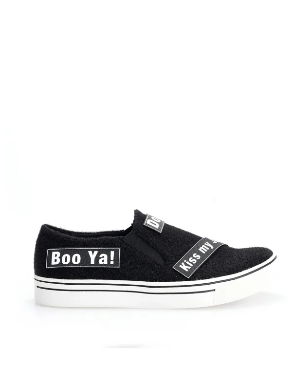 Comfortabel instappen Met witte, gelabelde zool Met ronde teen Versierd met patches Gemaakt van hoogwaardige stof Verpakt in de eigen doos