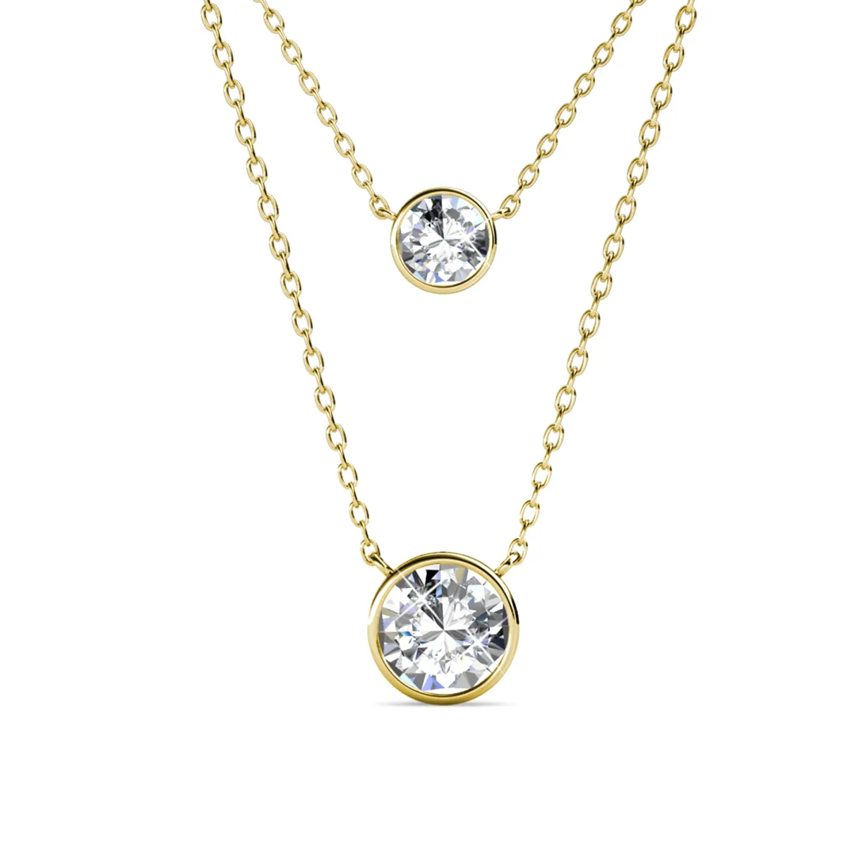 Samenstelling: Messing Afwerking: 18k verguld Steensoort: Oostenrijks kristal Aantal stenen (st.): 2 Steenkleur: Kristal Kettinglengte (mm): 400 + 50