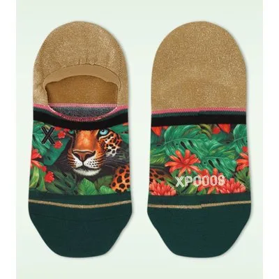 Vind jij sneakers of ballerina's te gek maar vind je het vreselijk deze met blote voeten te dragen? Deze 'onzichtbare' kousjes zijn de oplossing! Uitgevoerd in een stretchy, luxueuze, zachte stof met een fantastische jungle print en ingewerkte glitterdraad. * Sneakersokjes * Platte teennaad * Anti-slip siliconen hiel * Stretchy