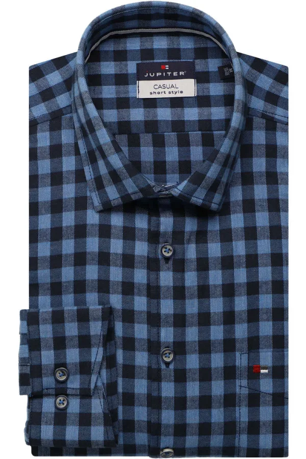 Jupiter Casual Overhemd blauw/zwart, Ruit Prijzen