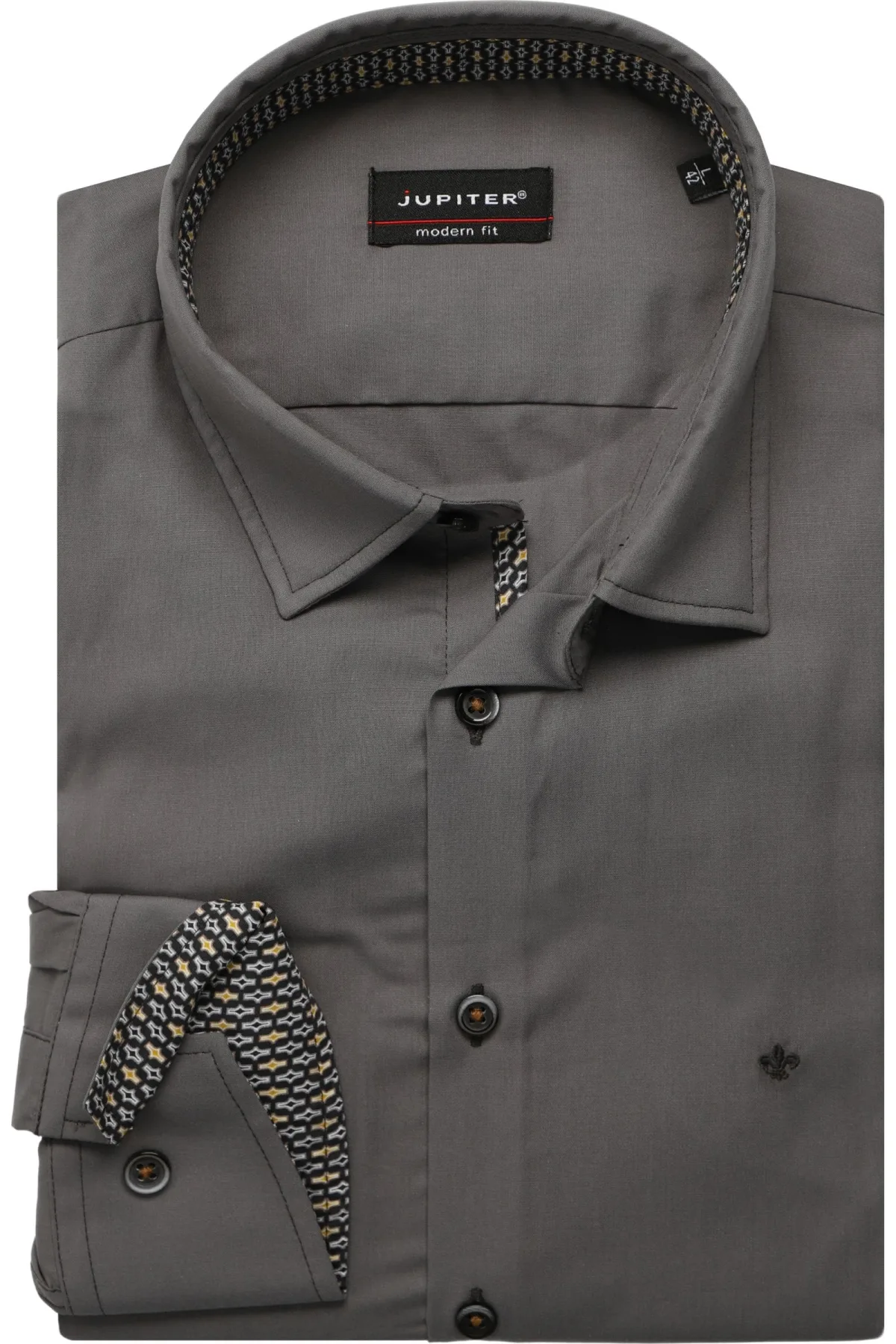 - Bij Overhemden.com kun je Jupiter Overhemd grijs, Effen kopen voor slechts €47,95