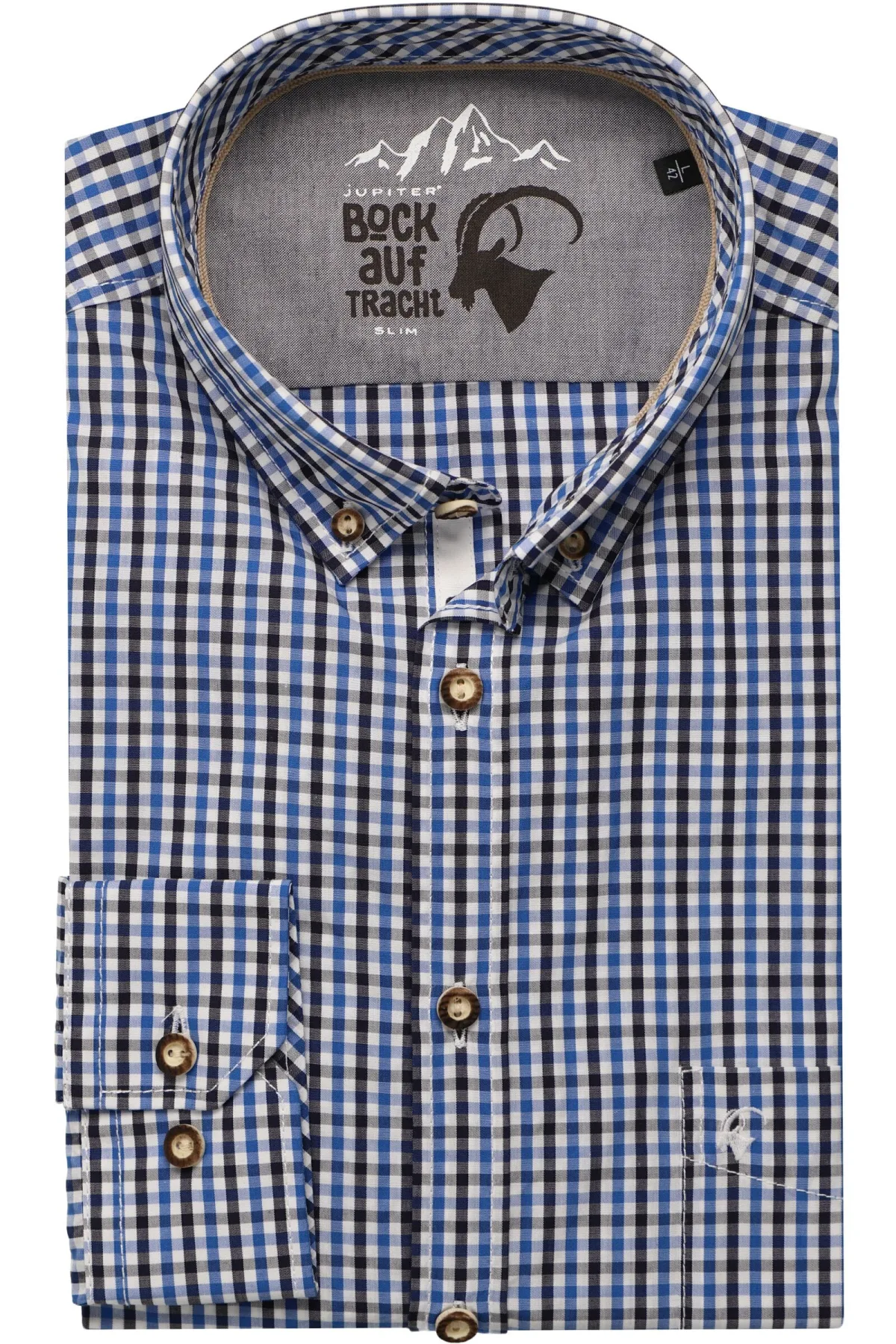 Jupiter Traditioneel overhemd middenblauw, Ruit