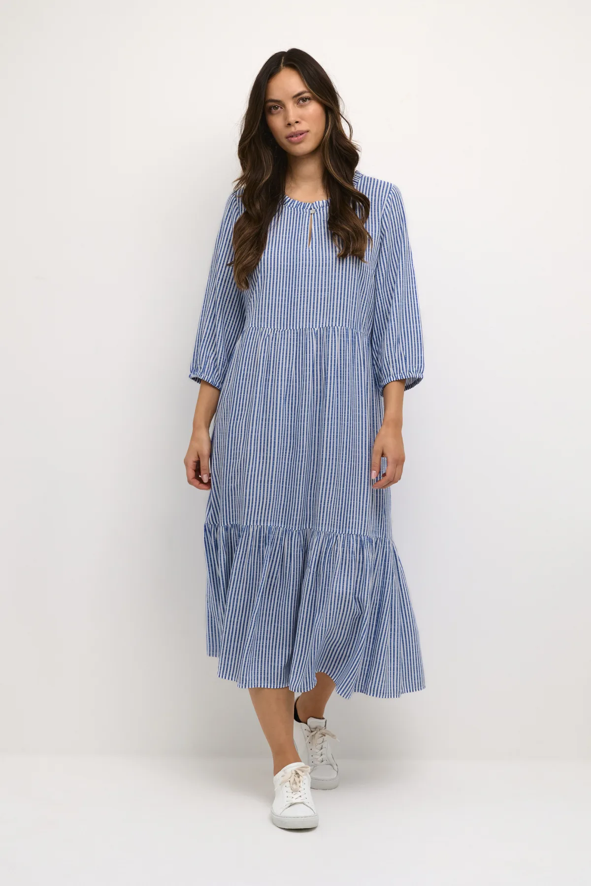 Kim,A-shape,Midi lengte,3/4 mouwen Fijne was 30°, niet bleken, niet in de droger drogen, Druipnat ophangen in de schaduw, koud strijken max. 110° C, 100% Viscose (LENZING™ ECOVERO™)