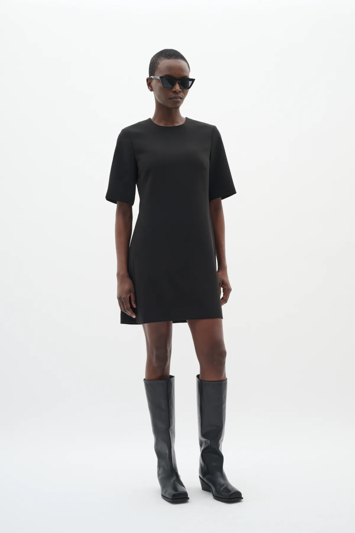 Deze mini-jurk met korte mouwen heeft een rechte pasvorm en ronde hals. De eenvoudige stijl biedt comfort en is geschikt voor diverse gelegenheden. Fijne was 30°, niet bleken, niet in de droger drogen, Druipnat ophangen, koud strijken max. 110° C, 39% Polyester (REPREVE®),34% Polyester,23% Viscose,4% Elastaan