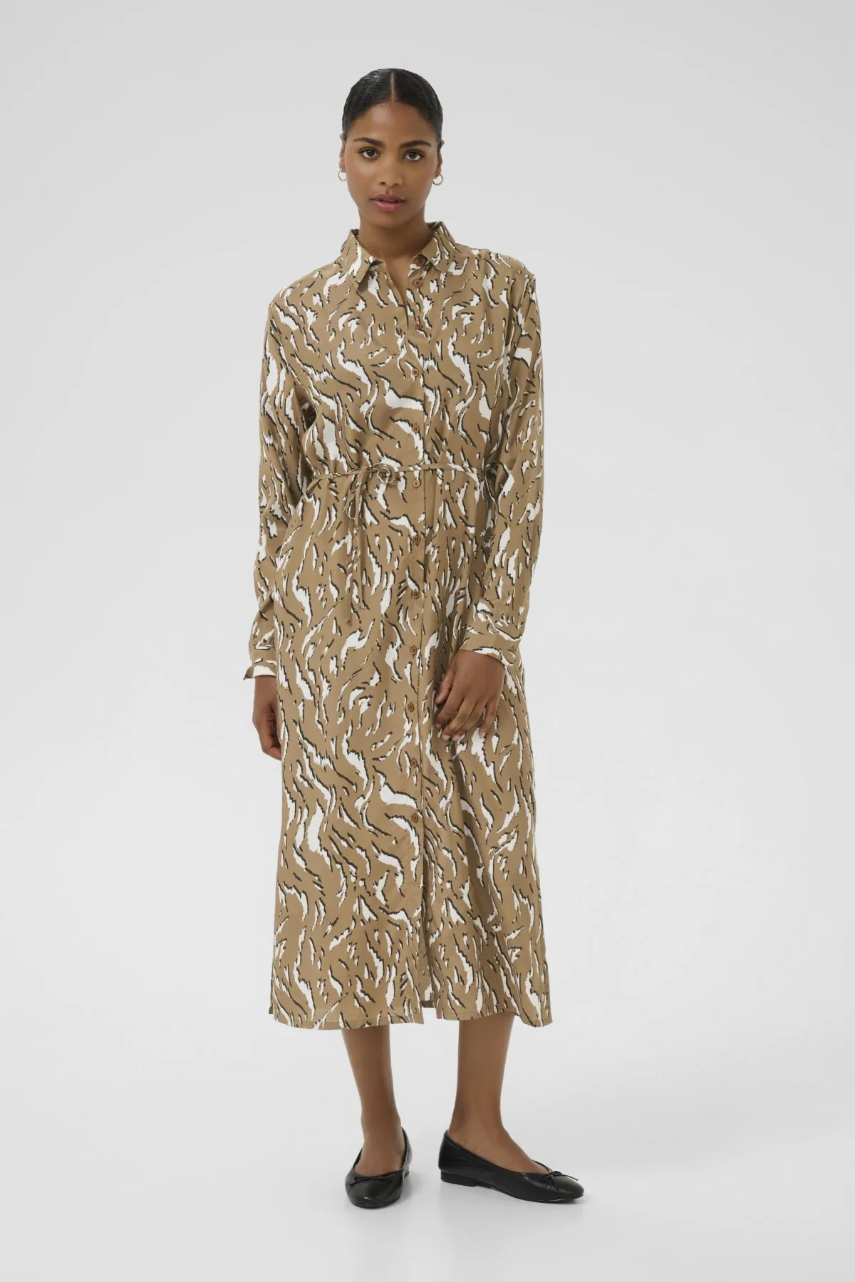 Deze overhemdjurk biedt een losse pasvorm, midi-lengte en klassieke kraag. Met ceintuur in de taille en lange mouwen voor veelzijdige stijl. Fijne was 30°, niet bleken, niet in de droger drogen, Druipnat ophangen, warm strijken max. 150° C, 50% Viscose,50% Viscose (LENZING™ ECOVERO™)
