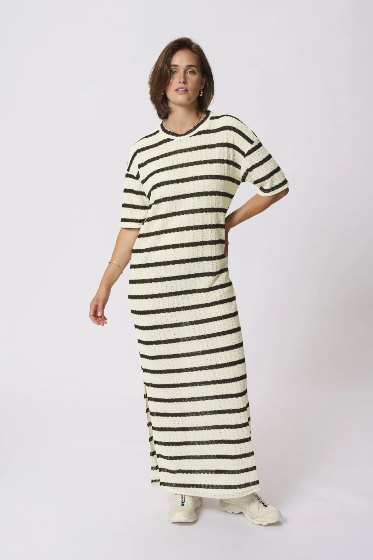Specificaties: Jurk Loose fit Turtledove / Black stripe