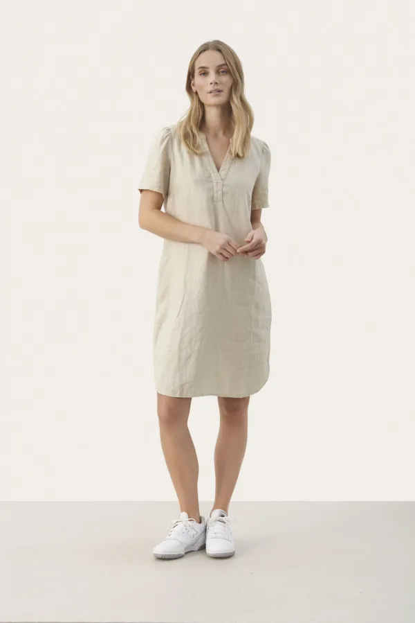 Regular fit,Boven de knie,Korte mouwen Wassen op 30°, niet bleken, niet in de droger drogen, Druipnat ophangen in de schaduw, koud strijken max. 110° C, 100% Linnen