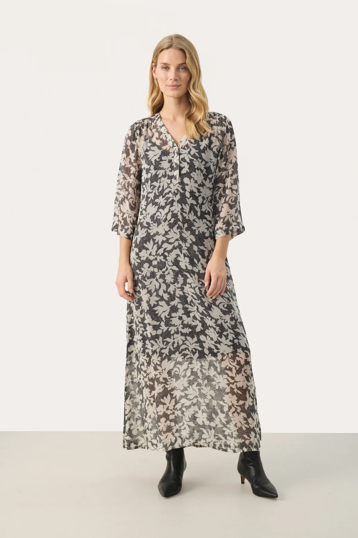 Jurk Regular fit Black Stitch Leaf print black multi Prijzen