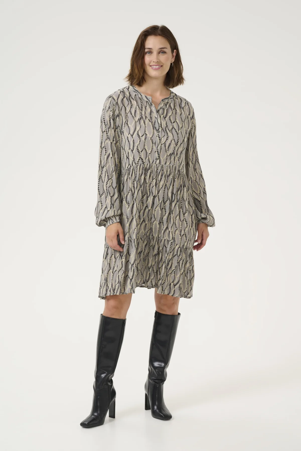 Kaffe Blousejurk 'KA Evity' lichtgeel / lichtgrijs / zwart