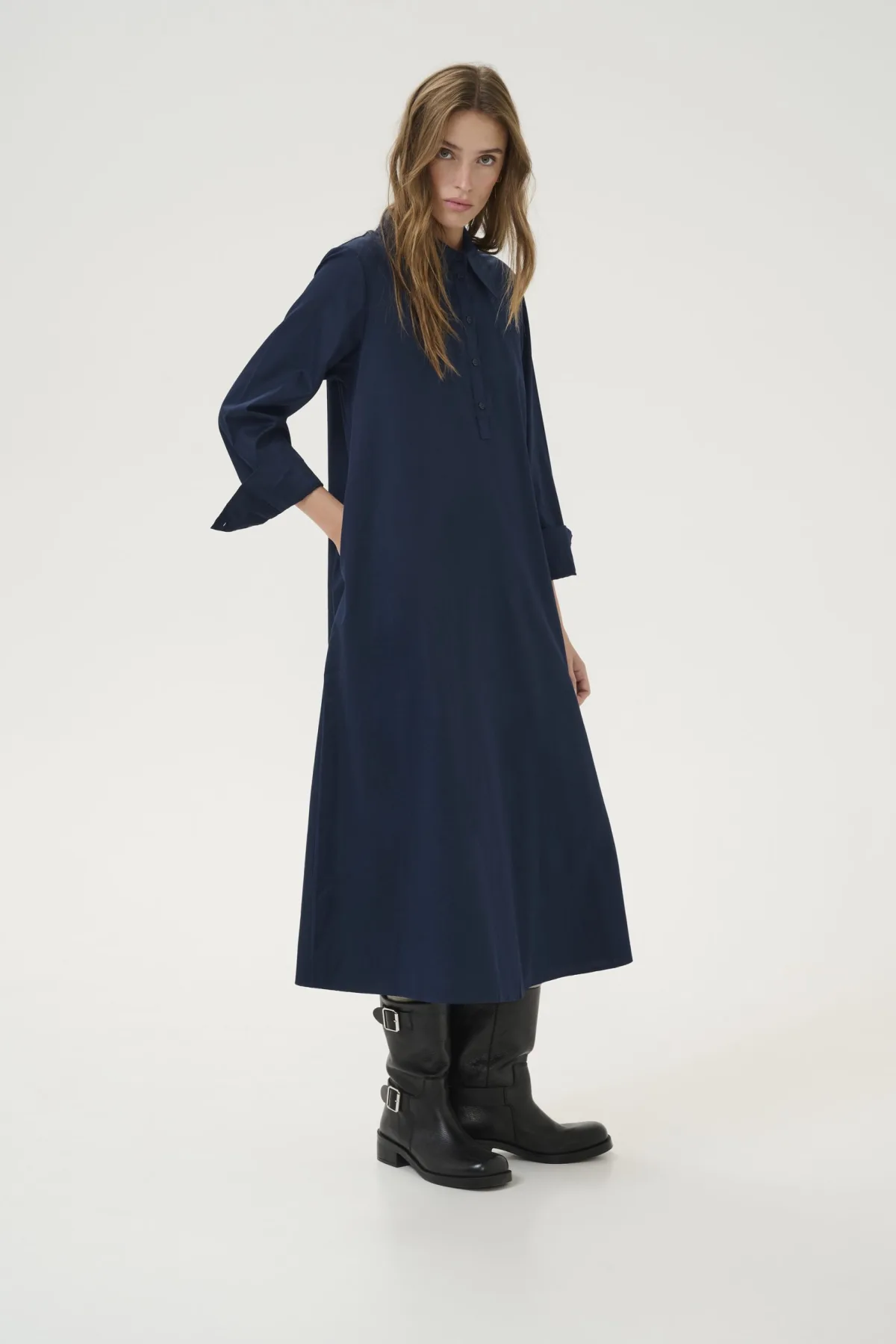 Relaxed fit,Midi lengte,Lange mouwen Wassen op 30°, niet bleken, niet in de droger drogen, Druipnat ophangen in de schaduw, warm strijken max. 150° C,. 100% Katoen (Organisch)