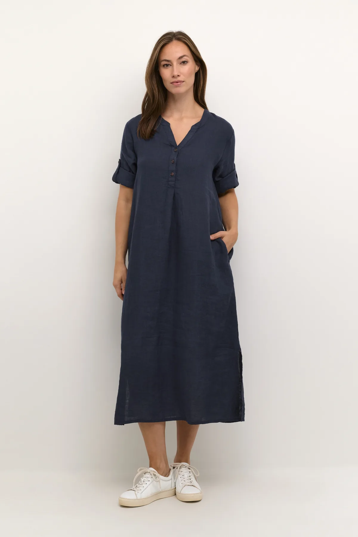 Mollie,Straight fit,Midi lengte,3/4 mouwen Fijne was 30°, niet bleken, niet in de droger drogen, Druipnat ophangen in de schaduw, koud strijken max. 110° C, 100% Linnen