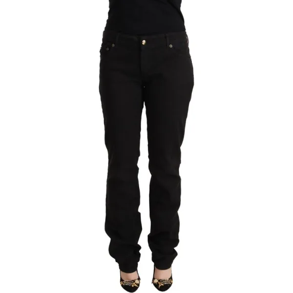 Verhoog, definieer en stijlen je garderobe met deze Just Cavalli zwarte stretch denim jeans. De ultieme basis voor elke verfijnde look, ze zijn vervaardigd uit een comfortabele mix van katoen en elastaan, die een flexibele pasvorm biedt die met je meebeweegt. De klassieke rechte pijp, met een subtiele toelopende snit, zorgt voor een flatterend profiel voor elke gelegenheid. Ervaar ongeëvenaard comfort en een veelzijdig ontwerp dat moeiteloos je hele garderobe aanvult. Duurzame constructie en eenvoudig te verzorgen wasbaarheid in de machine maken ze een praktische keuze voor dagelijks gebruik, die moeiteloos van dag naar nacht overgaat als je onmisbare basisstuk.