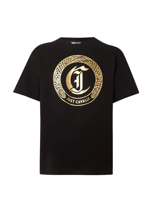 Specificaties: Just Cavalli Shirt ‘ROUND SNAKE’ goud / zwart