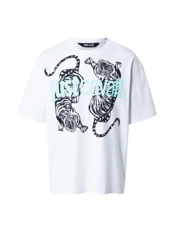 Just Cavalli Shirt ‘TIGERS’ aqua / zwart / wit