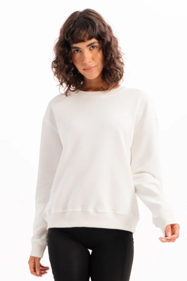 JUSTEVER Crew Neck Basic Pattern Ecru Dames Sweatshirt Trainingspak Top – Aura