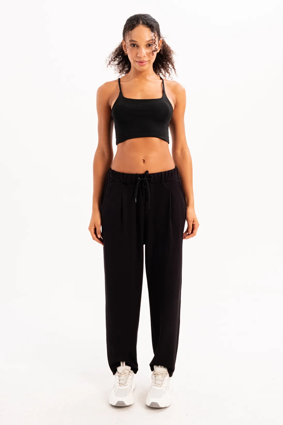 JUSTEVER Oversized Fit Elastische Taille Zakken Relaxte Pasvorm Zwarte Dames Joggingbroek – Flex Prijzen