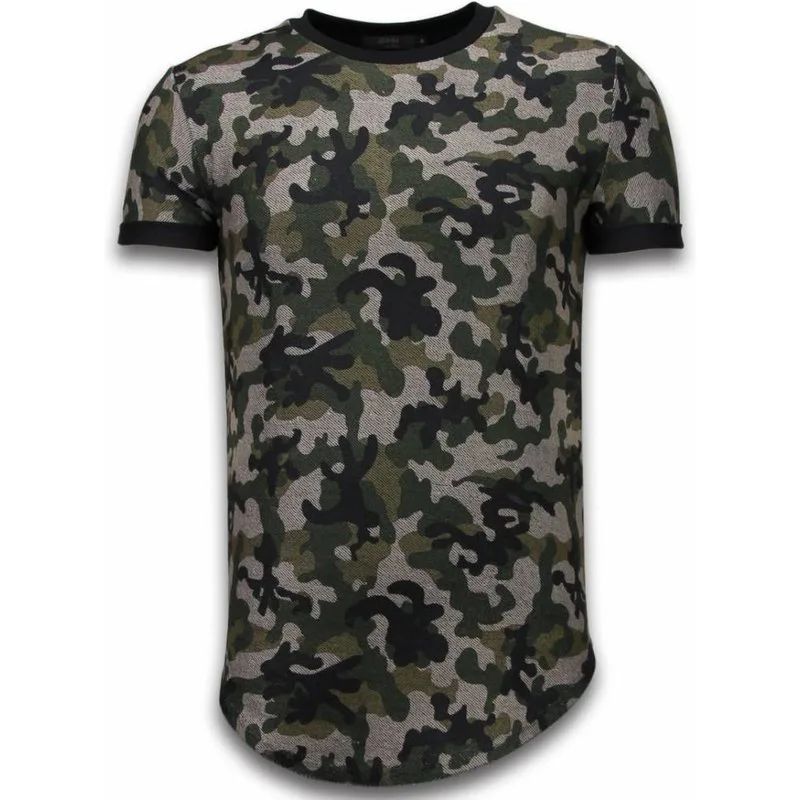 Exclusieve Long T-shirt met diverse specificaties. Dit T-shirt wordt gemaakt van een zeer hoogwaardige kwaliteit Polyester. Deze heeft een uitstekende afwerking en pasvorm. - Specificaties:- Kleur: Zie Afbeelding- Seizoen: Voorjaar / Najaar- Kraag: Ronde Kraag- Mouwen: Korte Mouw- Patroon: Camouflage- Kwalitatief Hoogwaardige Afwerking- Materiaal: 100% Polyester- Weefsel: Dun geweven- Pasvorm: Getailleerd Italiaans- Wasvoorschrift: Machinewas 30 graden, Binnenste buiten wassen (Niet in de droger)- Beschikbare maten: S - M - L - XL