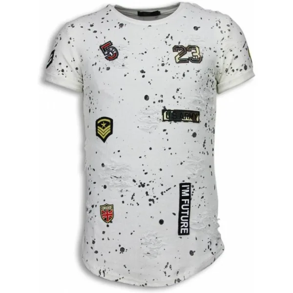 | Prijsgeschiedenis voor Paint Drops Army Shirt - Long Fit T-shirt Black Dotted - Wit | |