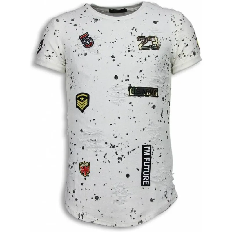 Paint Drops Army Shirt - Long Fit T-shirt Black Dotted...