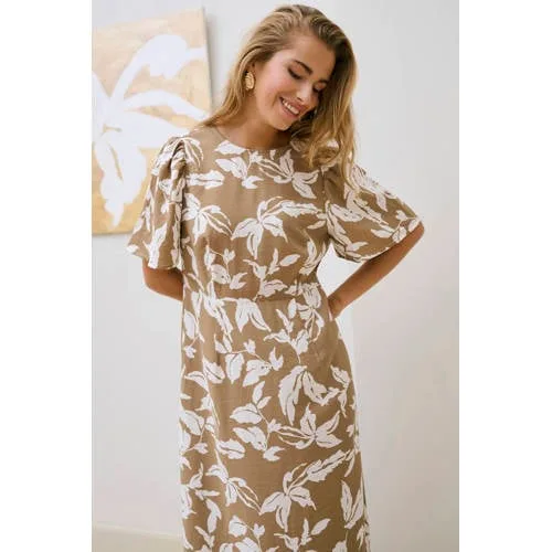 Kaffe a-lijn jurk met bloemenprint beige