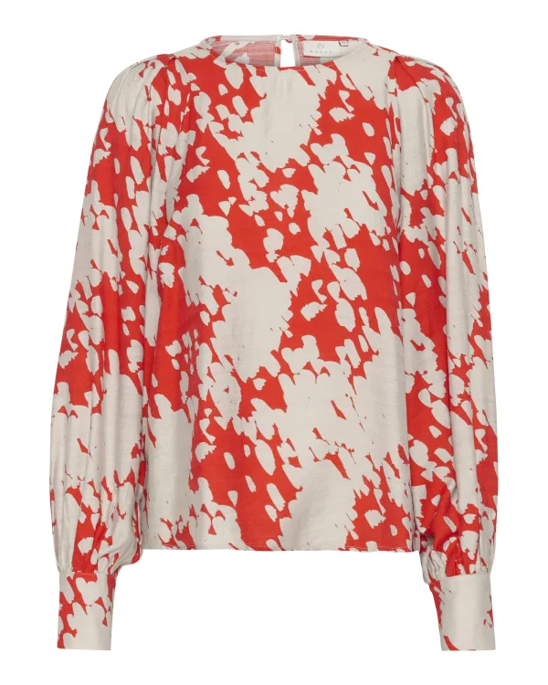 Kaffe Blouse ‘KA Louise’ beige / rood