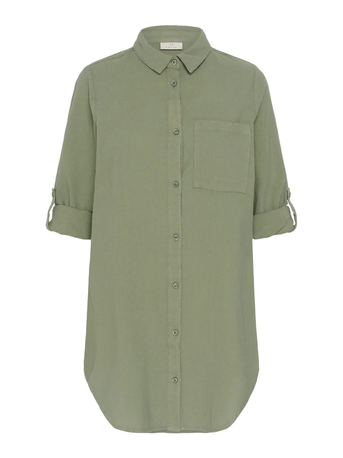 Een frisse aanvulling op je garderobe, deze katoenen dames blouse in groen van Kaffe combineert een heldere kleur met een rechtlijnige snit. De blouse is gemaakt van 100% katoen, voelt soepel aan op de huid en heeft een rechtvallende pasvorm die ontspannen langs het lichaam valt. De middel-lange lengte maakt het model geschikt om zowel in als over je broek of rok te dragen.Doordachte details voor dagelijks gebruik Gemaakt van 100% katoen voor een ademend en zacht draaggevoel Rechtvallende pasvorm voor een ontspannen silhouet Lange, rechte mouwen met oprolfunctie voor extra variatie Klassieke kraag en knoopsluiting over de hele lengte Effen groene kleur, te combineren met denim en neutrale tinten Borstzak als subtiel detail aan de voorkant Middel-lange lengte, geschikt voor zowel casual als meer geklede outfitsGeschikt voor meerdere seizoenenDeze blouse komt goed van pas in het voorjaar en de frisse dagen daaromheen. Draag de mouwen lang voor extra bedekking, of rol ze op met de oprolfunctie wanneer het warmer wordt. In combinatie met een jeans ontstaat een casual outfit, met een nette broek of rok krijgt je look een formelere uitstraling.Kaffe: scandinavische eenvoud met een vrouwelijke insteekKaffe is een Deens merk dat bekendstaat om vrouwelijke collecties met een toegankelijke uitstraling. De ontwerpen hebben vaak een rustige basis, aangevuld met doordachte details die het dagelijks dragen prettig maken. Deze blouse sluit daarbij aan en biedt een moderne, draagbare stijl die moeiteloos in je dagelijkse kledingkeuze past.Een praktische blouse die je snel aantrekt op drukke dagen en bij zowel casual als meer geklede combinaties past.
