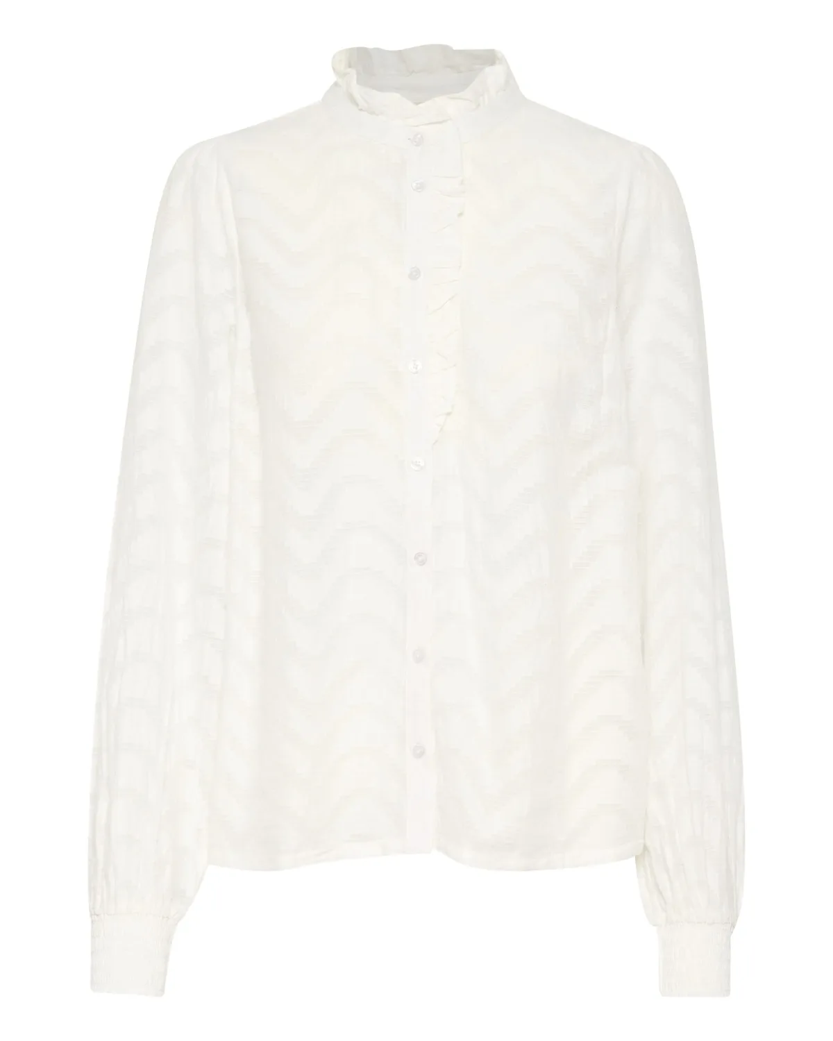 Blouse type: Klassieke blouse; Design: Gevoerde zoom/rand, Elastische taille/zoom, Knop placket, Staande kraag; Type sluiting: Knoopsluiting; Materiaal: Katoen; Motief: Effen; Kraag: Opstaande kraag; Details: Ruches, Gedrapeerd; Extra's: Met textuur; Pasvorm: Normale pasvorm; Armlengte: Lange mouw; Lengte: Normale lengte