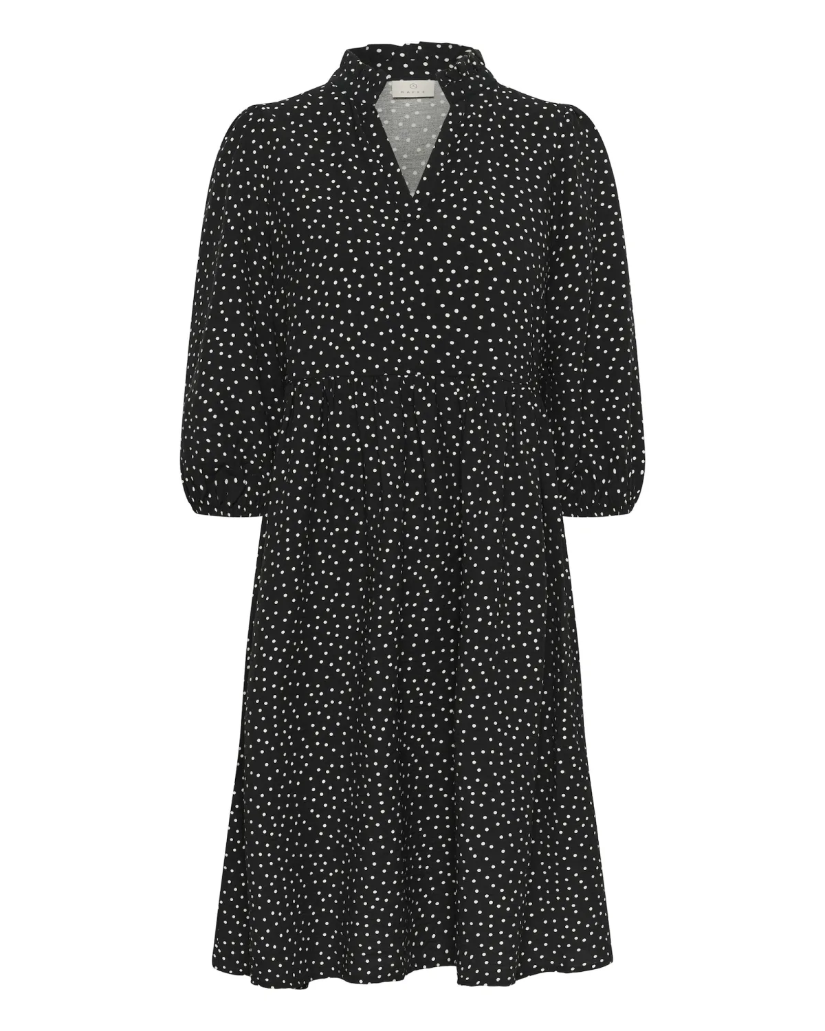 Design: Gevoerde zoom/rand; Materiaal: Viscose; Motief: Gestippeld; Details: Volant; Extra's: All-over patroon; Lengte: Knielengte; Pasvorm: Normale pasvorm; Armlengte: Driekwart mouw