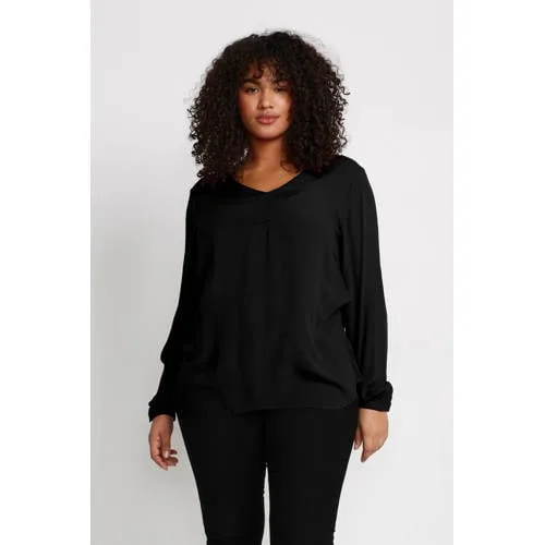 Blouse type: Blouseshirt; Design: 1-knoops manchetten, Ronde zoom, Overcut schouder; Materiaal: Viscose; Motief: Effen; Kraag: Zonder kraag; Details: Plooien, Gedrapeerd; Extra's: Gestructureerd oppervlak, Op staal naden, Gladde stof, Koele grip; Pasvorm: Normale pasvorm; Armlengte: Lange mouw; Lengte: Normale lengte