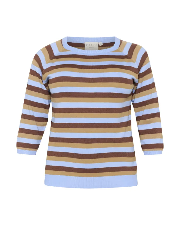Specificaties: KAFFE CURVE Trui ‘Tilda’ beige / hemelsblauw / bruin