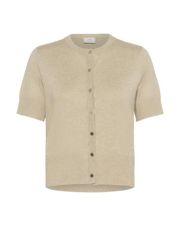 Design: Geribbelde kraag, Knop placket, Geribd ceintuurtje; Type sluiting: Knoopsluiting; Materiaal: Knitwear; Halstype: Ronde hals; Motief: Mélange; Extra's: Fully fashioned, Met textuur; Pasvorm: Normale pasvorm; Armlengte: Halve mouw; Lengte: Normale lengte