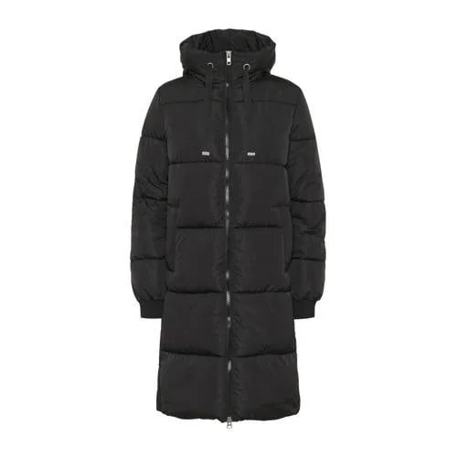 Dames lange pufferjas met comfortabele, losse pasvorm. Voorzien van capuchon, ritssluiting over de hele lengte en geribde boorden voor dagelijks gemak. Fijne was 30°, niet bleken, drogen in droger behoedzaam, Druipnat ophangen, niet strijken, 100% Polyester (Gerecycled)