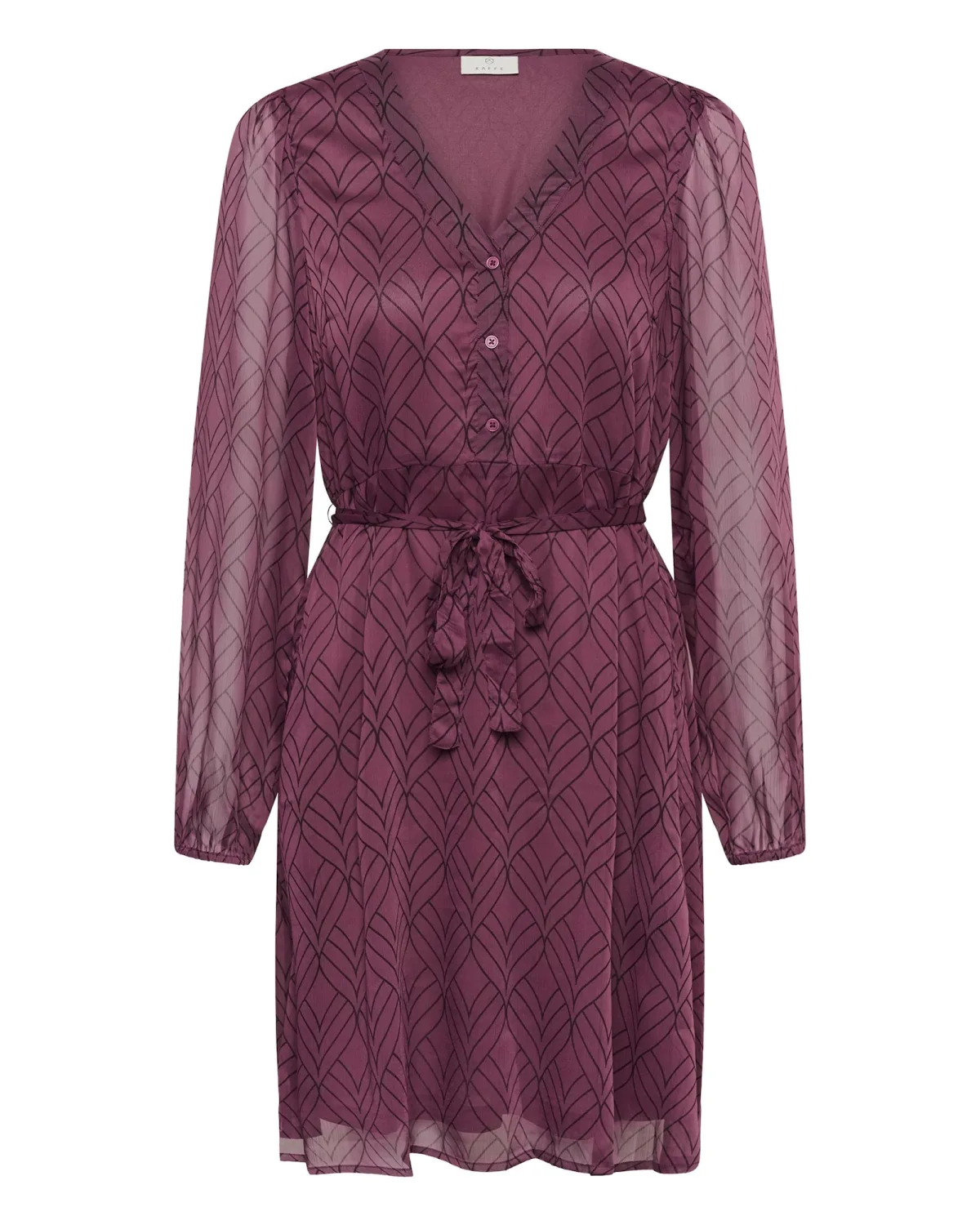 Design: Tailleriem; Halstype: V-hals; Extra's: All-over patroon; Lengte: Knielengte; Pasvorm: Normale pasvorm; Armlengte: Lange mouw