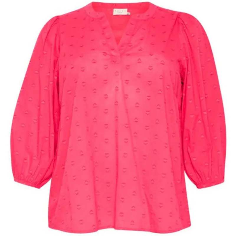 Deze top van Kaffe Curve is gemaakt van 100% katoen en heeft een driekwart mouw. De Vhals voegt een stijlvolle touch toe aan jouw outfit. Perfect voor dagelijks gebruik en veelzijdig te combineren.Extra details zijn: Vhals 3/4 mouwen lichte pofmouwMateriaal:100% KatoenWasvoorschrift:Machinewas max. Fijnwas 30 graden Celsius. Niet in droger