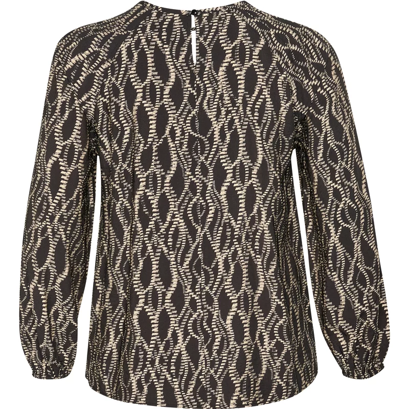 Deze top voor dames van Kaffe Curve is gemaakt van viscose. Het model heeft een ronde hals en lange mouwen.Extra details zijn: Ronde hals Lange mouw Allover printMateriaal:87% Viscose, 13% NylonWasvoorschrift:Machinewas max. Fijnwas 30 graden Celsius. Niet in droger