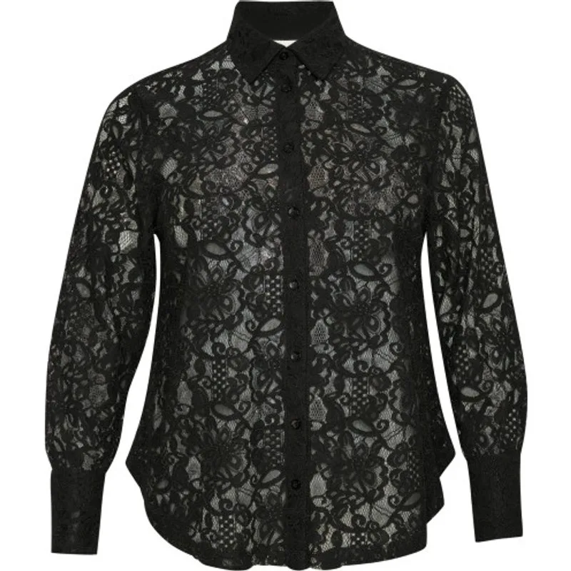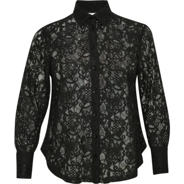 Deze blouse voor dames van Kaffe Curve is gemaakt van kant. Het model heeft een klassieke kraag en lange mouwen. De blouse heeft een knoopsluiting.Extra details zijn: Kant Klassieke kraag KnoopsluitingMateriaal:80% Katoen, 20% PolyamideWasvoorschrift:Machinewas max. Fijnwas 30 graden Celsius. Niet in droger